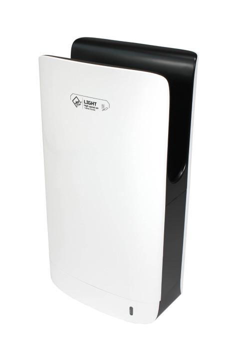LIGHT je jedným z najmenších tryskových sušičov z radu Jet Dryer. Výška prístroja je iba 55,6 cm, šírka 29,6 cm. Sušič je vhodný predovšetkým do malých kúpeľní.